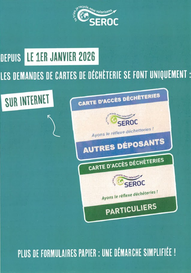 Nous vous informons qu’à compter du 1er janvier 2026, les demandes de carte de déchèterie évoluent.